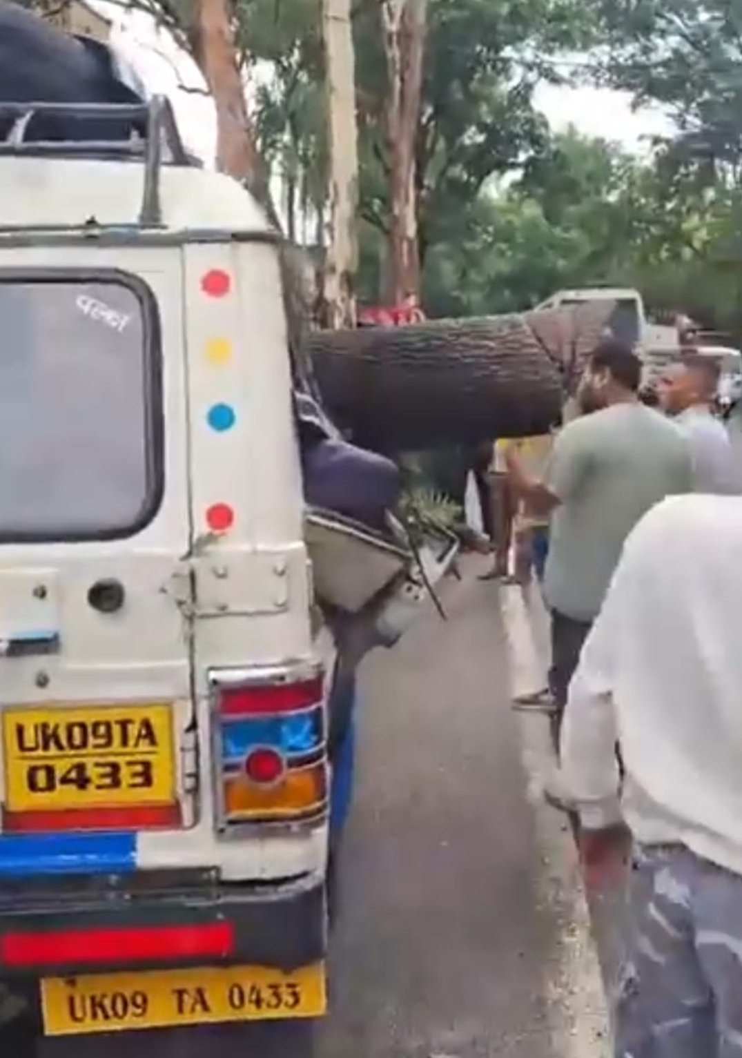 आज दोपहर करीब दो बजे के आसपास देहरादून से नौगांव बड़कोट जा रही एक मैक्सी जीप के ऊपर चकराता रोड पर एफ आर आई के सामने पेड़ का बड़ा टहना टूट कर मैक्सी कैब जीप पर गिर गया जिससे जीप में सवार एक यात्री अरविंद लाल निवासी भाटिया गांव बड़कोट की मौके पर ही मृत्यु हो गई और एक अन्य सवारी गरास जो नेपाली मूल का श्रमिक है बड़कोट का वह गंभीर रूप से घायल हो गया। पेड़ का बड़ा हिस्सा जो गाड़ी के बिल्कुल बीच में गिरा उसने गाड़ी छत को फाड़ दिया, जिससे अरविंद लाल की मृत्यु हुई और दूसरा यात्री घायल हुआ। गाड़ी का चालक नौगांव निवासी महावीर रावत व चार अन्य यात्री इस दुर्घटना में बाल बाल बचे।