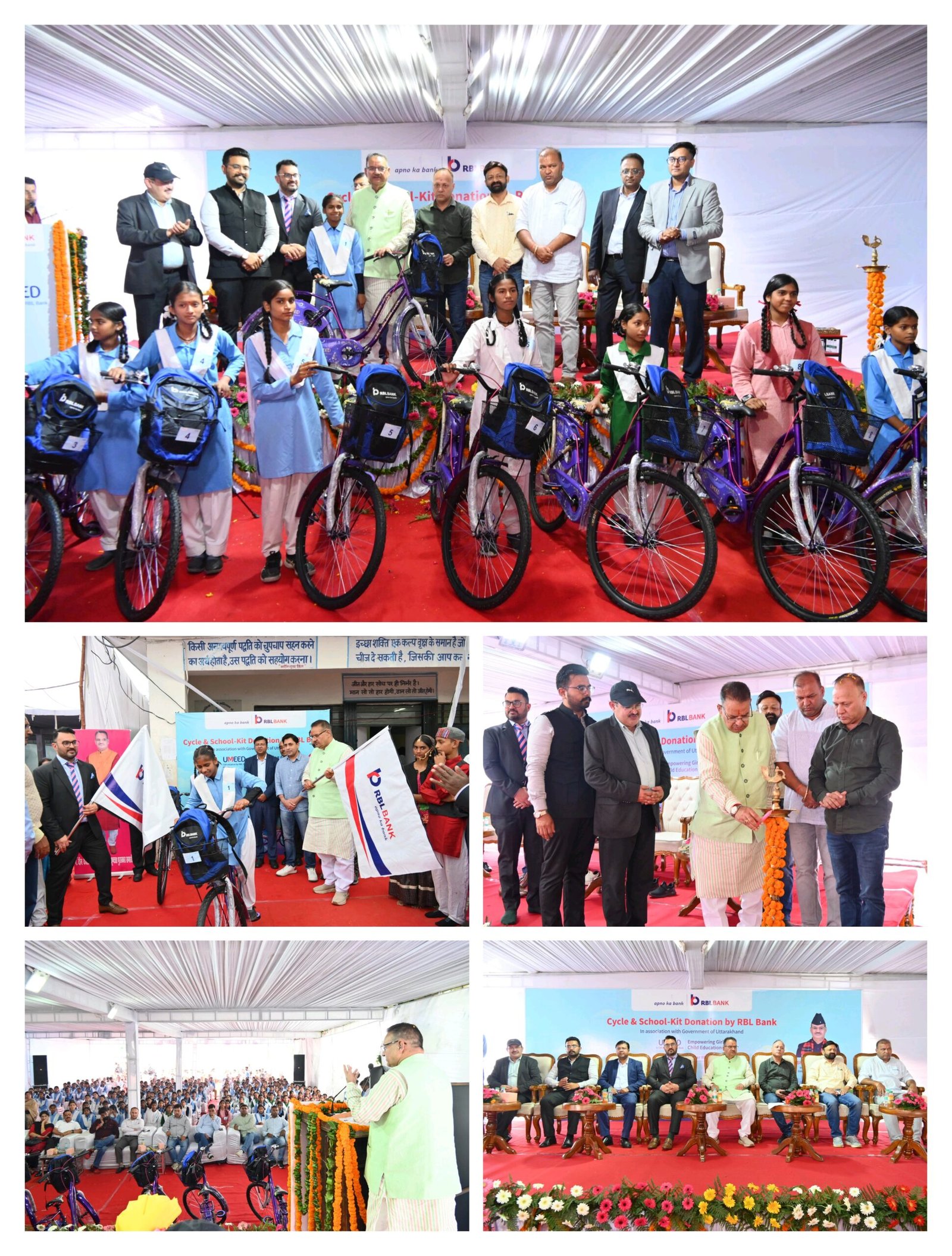 *उम्मीद” एक पहल के अन्तर्गत आर.बी.एल. बैंक के सहयोग से छात्राओं को साइकिल एवं स्कूल कीट वितरण करते कैबिनेट मंत्री गणेश जोशी।*