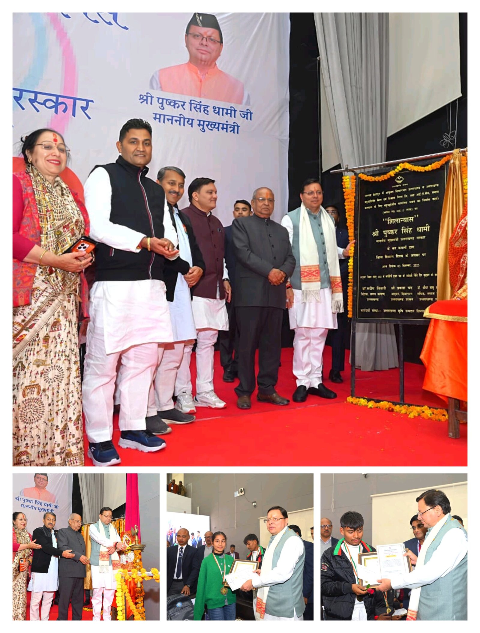 मुख्यमंत्री पुष्कर सिंह धामी ने बुधवार को विश्व दिव्यांगजन दिवस के अवसर पर समाज कल्याण विभाग द्वारा हल्द्वानी एमबीपीजी कॉलेज ऑडिटोरियम में राज्य स्तरीय दक्षता पुरस्कार वितरण समारोह में दिव्यांगजन प्रतिभागियों को पुरस्कार राशि, मेडल, प्रशस्ति पत्र एवं मानपत्र प्रदान किए।