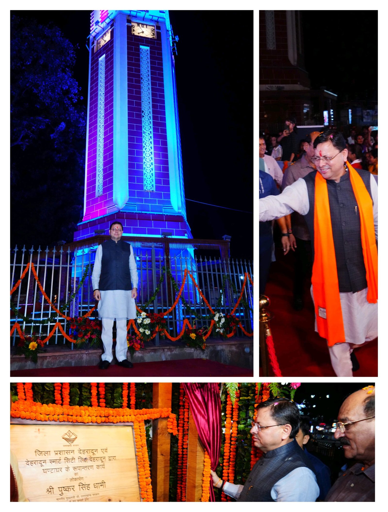 *मुख्यमंत्री पुष्कर सिंह धामी ने किया देहरादून के ऐतिहासिक घण्टाघर के भव्य रूपांतरण एवं स्वचालित प्रकाश व्यवस्था का लोकार्पण*
