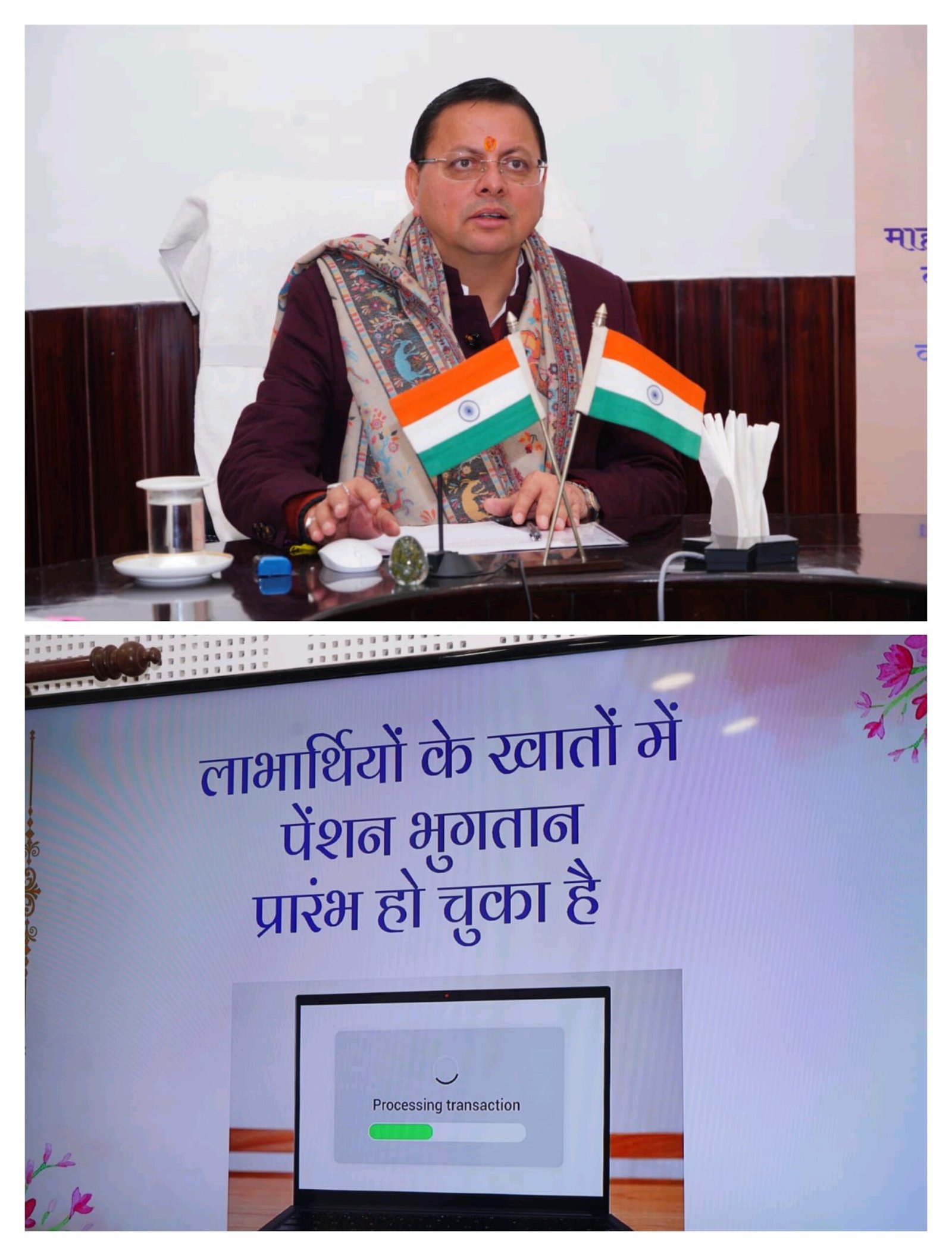 मुख्यमंत्री पुष्कर सिंह धामी ने रविवार को मुख्यमंत्री कैम्प कार्यालय से समाज कल्याण विभाग के अंतर्गत चलाई जा रही विभिन्न पेंशन योजनाओं के लाभार्थियों के बैंक खातों में डी.बी.टी. प्रणाली के माध्यम से दिसंबर माह की पेंशन किश्त का भुगतान किया। इस अवसर पर मुख्यमंत्री ने 09 लाख 43 हजार 964 लाभार्थियों के खातों में कुल 140 करोड़ 26 लाख 97 हजार रुपये की राशि ऑनलाइन जारी की।