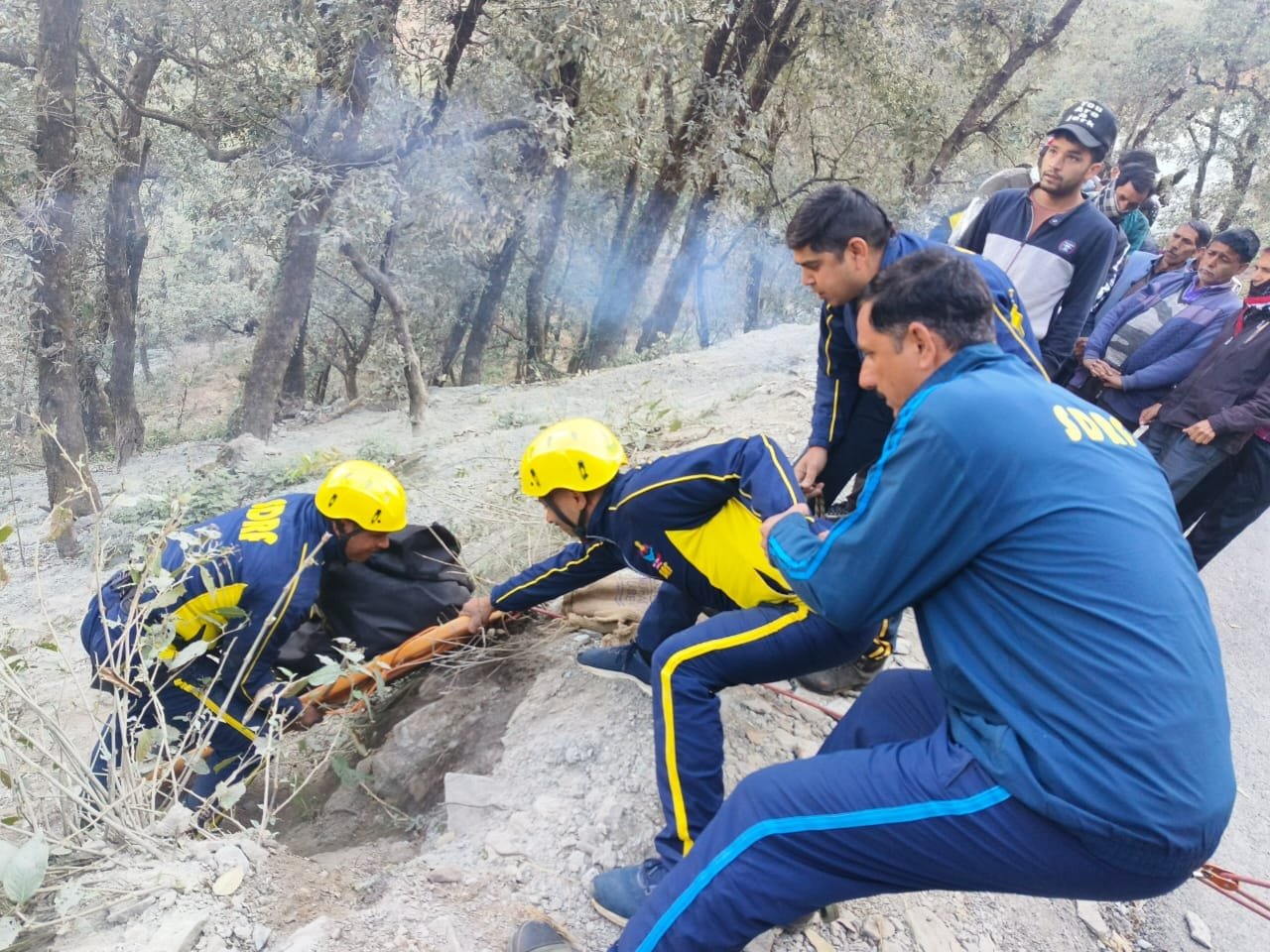 SDRF टीम द्वारा तत्काल घटनास्थल पर पहुंचकर खाई में उतरकर कड़ी मशक्कत के बाद रोप स्ट्रेचर के माध्यम से खाई से मुख्य मार्ग तक लाकर दोनों के शवो को जिला पुलिस के सुपुर्द किया गया।