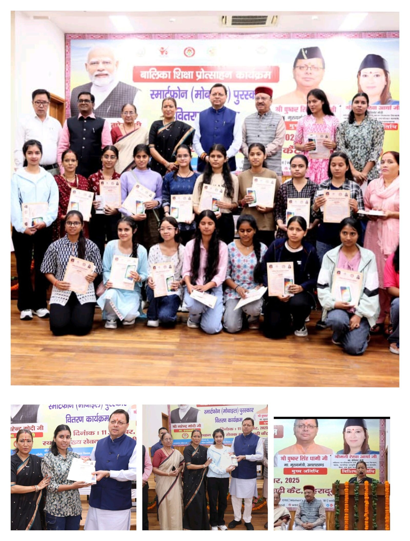 मुख्यमंत्री और महिला सशक्तिकरण एवं बाल विकास मंत्री ने पूरे प्रदेश के सभी जिलों से आई 2024 और 2025 की बोर्ड परीक्षाओं में अव्वल रही 326 मेधावी बालिकाओं को पुरस्कार स्वरूप मोबाइल फोन भेंट किया। मुख्य सेवक सदन, गढ़ी कैंट में अंतरराष्ट्रीय बालिका दिवस के अवसर पर ‘बालिका शिक्षा प्रोत्साहन कार्यक्रम’ का भव्य आयोजन किया गया।