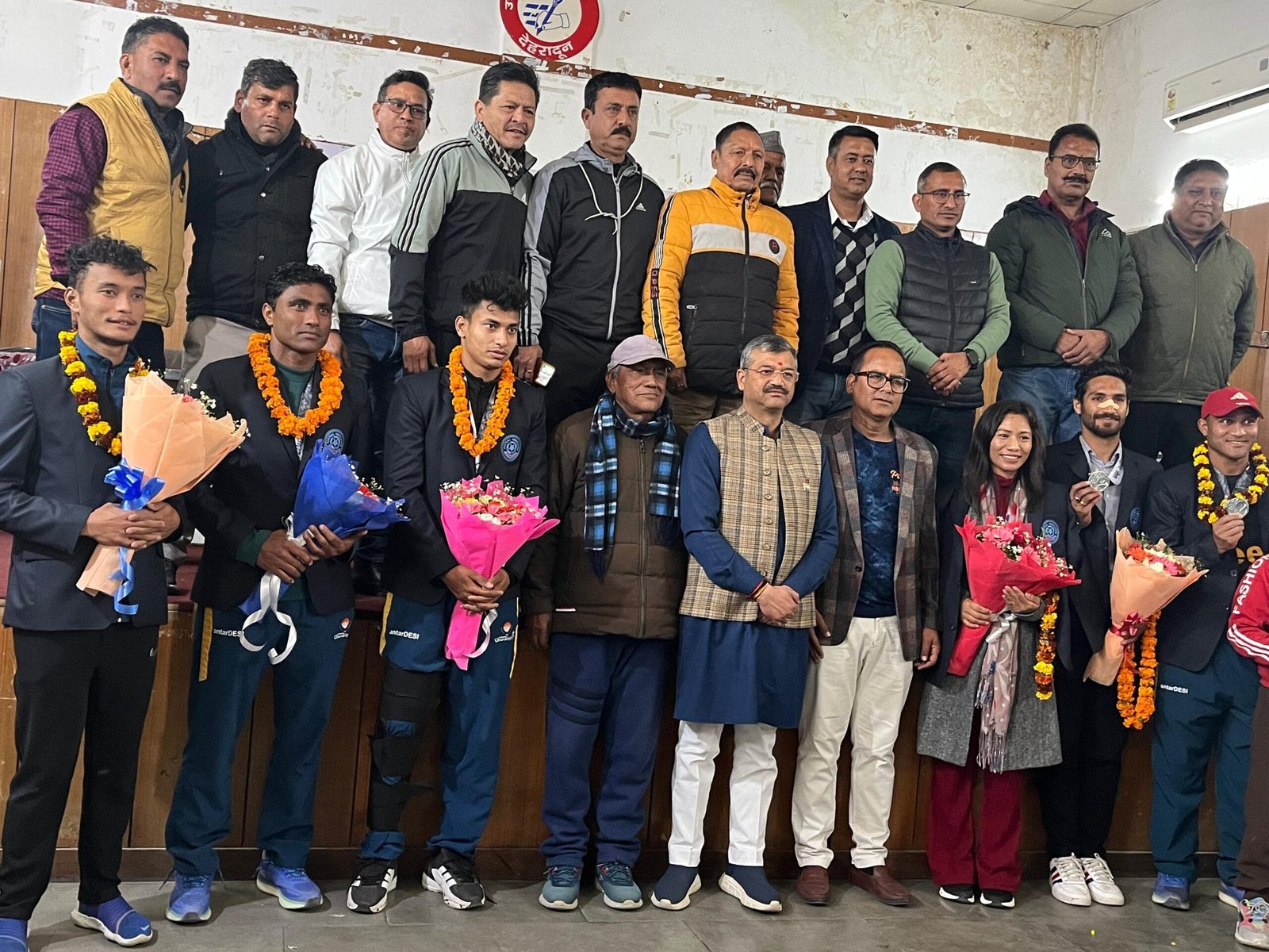 उत्तराखंड में आयोजित 38वें राष्ट्रीय खेलों में उत्तराखंड की फुटबॉल टीम ने रजत पदक जीतकर प्रदेश का नाम रोशन किया है। देहरादून फुटबॉल एसोसिएशन ने नेशनल गेम्स में उत्तराखंड फुटबॉल टीम के रजत पदक जीतने खिलाड़ियों को सम्मानित किया। उत्तरांचल प्रेस क्लब में आयोजित सम्मान समारोह में बतौर मुख्य अतिथि देहरादून के महापौर सौरभ थपलियाल मौजूद रहे। मेयर ने एसोसिएशन को आश्वस्त किया कि फुटबॉल के विकास एवं संरक्षण के लिए वे हमेशा उपलब्ध रहेंगे, जिससे युवाओं को खेल के लिए आकर्षित किया जा सके। इस अवसर पर उत्तराखंड टीम के खिलाड़ी शैलेन्द्र नेगी, शशांक राना, अभिषेक रावत, शेर सिंह बोरा, अक्षय थापा, वीरेंद्र पांडे एवं उत्तराखंड स्नो गर्ल से विख्यात मेनका गुंजियाल रावत को सम्मानित किया गया। इस अवसर पर कार्यक्रम की अध्यक्षता दिलबर सिंह बिष्ट ने की। फुटबॉल एसोसिएशन ऑफ देहरादून के सचिव राजेंद्र सिंह रावत, उपाध्यक्ष प्रवीण फरासी, कोषाध्यक्ष राहुल रावत, पुष्कर गोसाईं, रमेश राणा, गोविंद बिष्ट, अनूप राना, रेफरी एसोसिएशन के अध्यक्ष सतीश कुलाश्री आदि उपस्थित रहे।