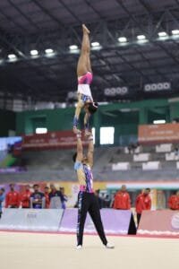 एक्रोबेटिक जिम्नास्टिक मिक्स्ड जोड़ी (सीनियर) में महाराष्ट्र के रिद्धि सचिन जैसवाल और शुभम सुनील सरकते ने 52.250 अंकों के साथ स्वर्ण पदक हासिल किया, जबकि केरल(47.720) और कर्नाटक(46.830) ने रजत और कांस्य पदक अपने नाम किए।