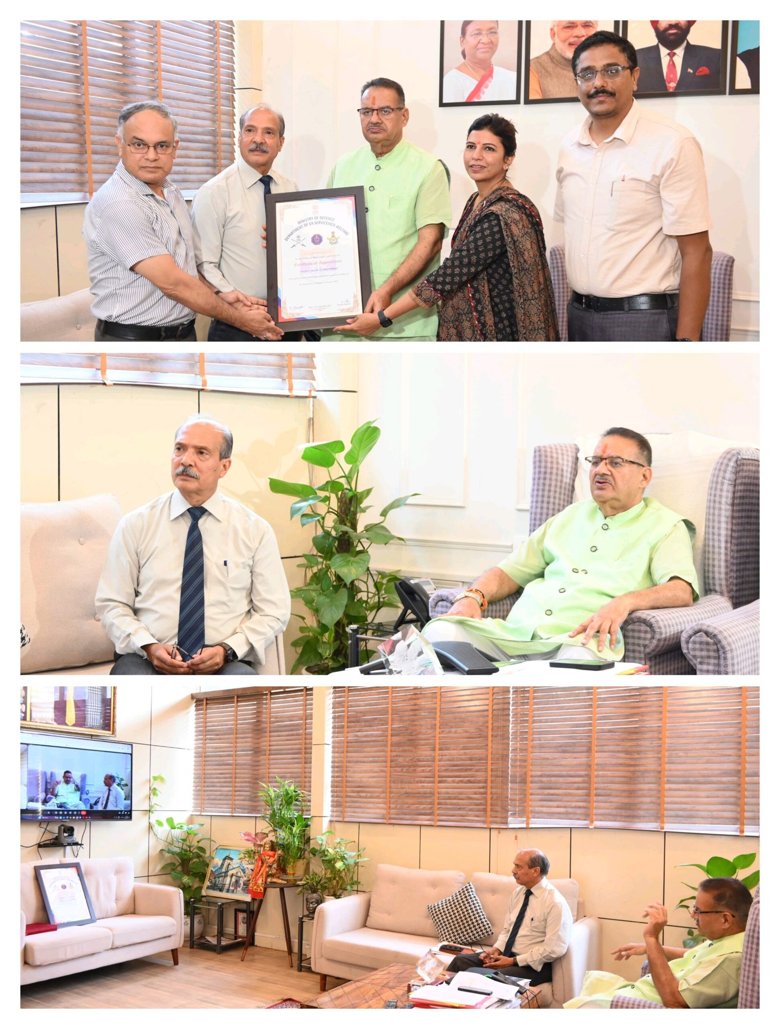 बैठक के दौरान विभागीय अधिकारियों ने सैनिक कल्याण मंत्री गणेश जोशी को हाल ही में केंद्रीय रक्षा मंत्री राजनाथ सिंह द्वारा नेशनल कॉन्क्लेव 2025 में उत्तराखण्ड सैनिक कल्याण विभाग को मिले राष्ट्रीय स्तर का पुरस्कार भी भेंट किया। यह सम्मान विभाग द्वारा पूर्व सैनिकों के कल्याण, पुनर्वास तथा सैनिक-केंद्रित योजनाओं के प्रभावी क्रियान्वयन के लिए दिया गया है। इस उपलब्धि पर मंत्री जोशी ने विभाग के अधिकारियों को बधाई और शुभकामनाएं दीं।