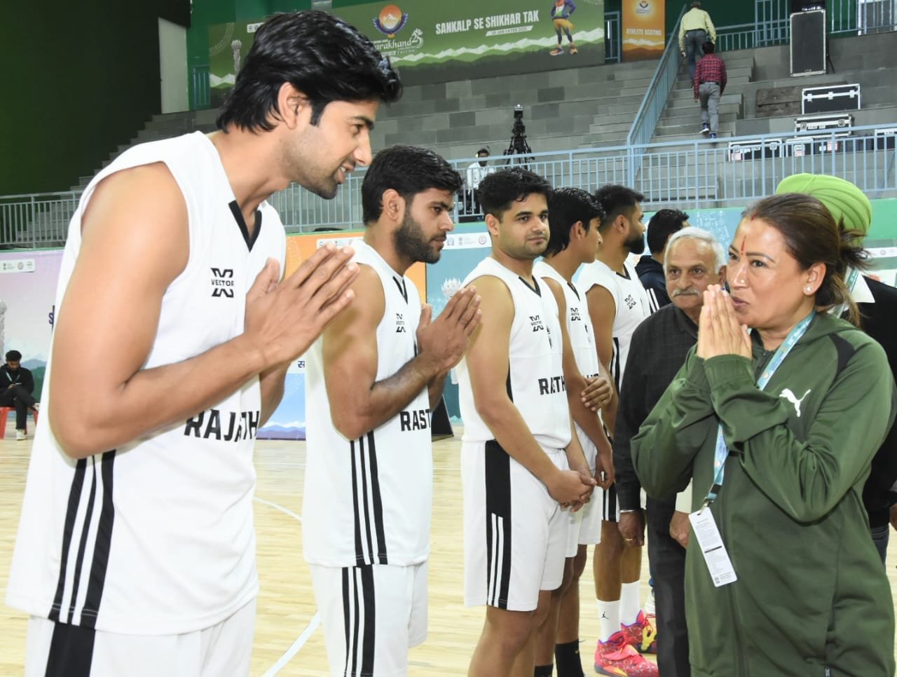 खेल मंत्री रेखा आर्या महाराणा प्रताप स्पोर्ट्स कॉलेज में चल रहे बास्केटबॉल मैच देखने पहुंची।उन्होंने पंजाब और उत्तर प्रदेश के बीच चल रहा महिला वर्ग का मैच देखा। इसके बाद पुरुष वर्ग का तमिलनाडु और पंजाब के बीच हुआ मैच भी खेल मंत्री ने देखा।