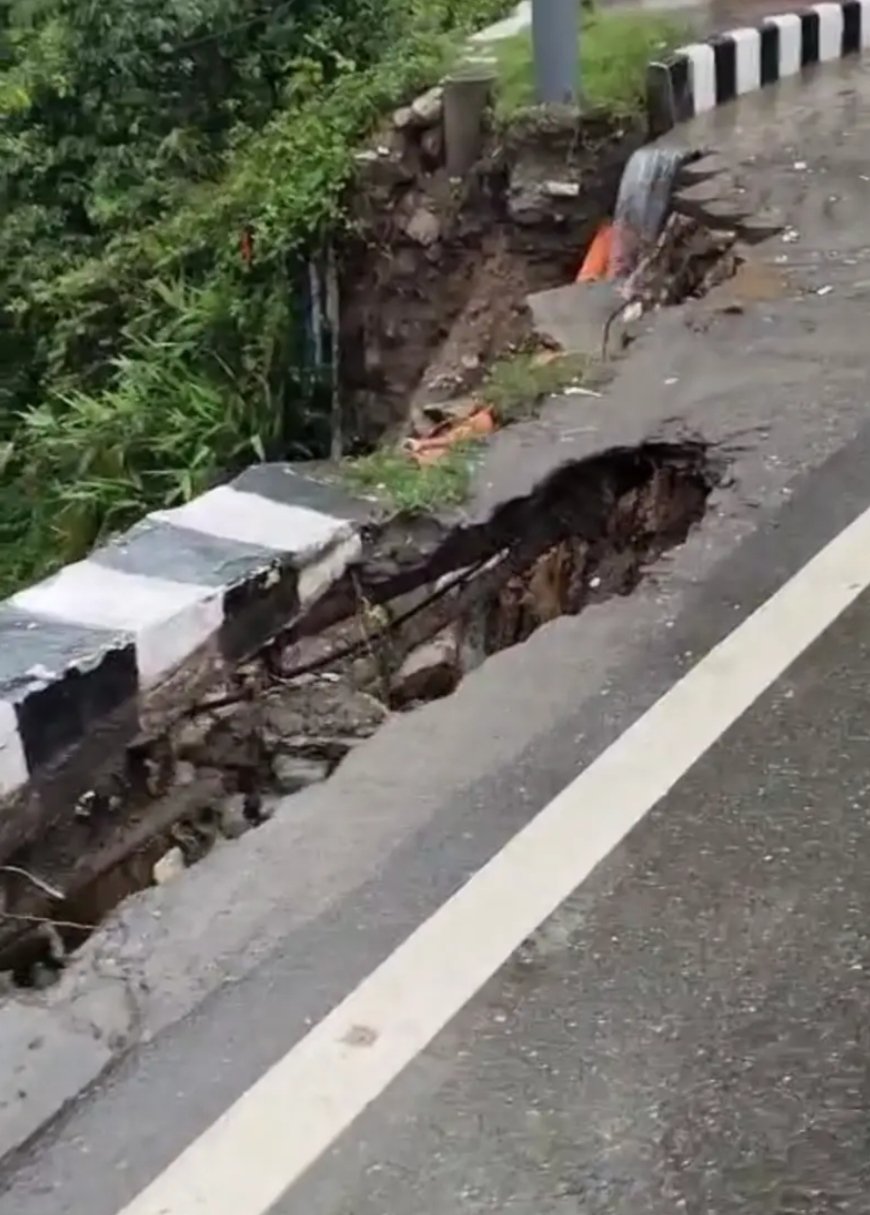 मालसी पुलिया (डियर पार्क के पास) एक तरफ से टूटी तेज बारिश के चलते पुलिया का किनारा हुआ क्षतिग्रस्त