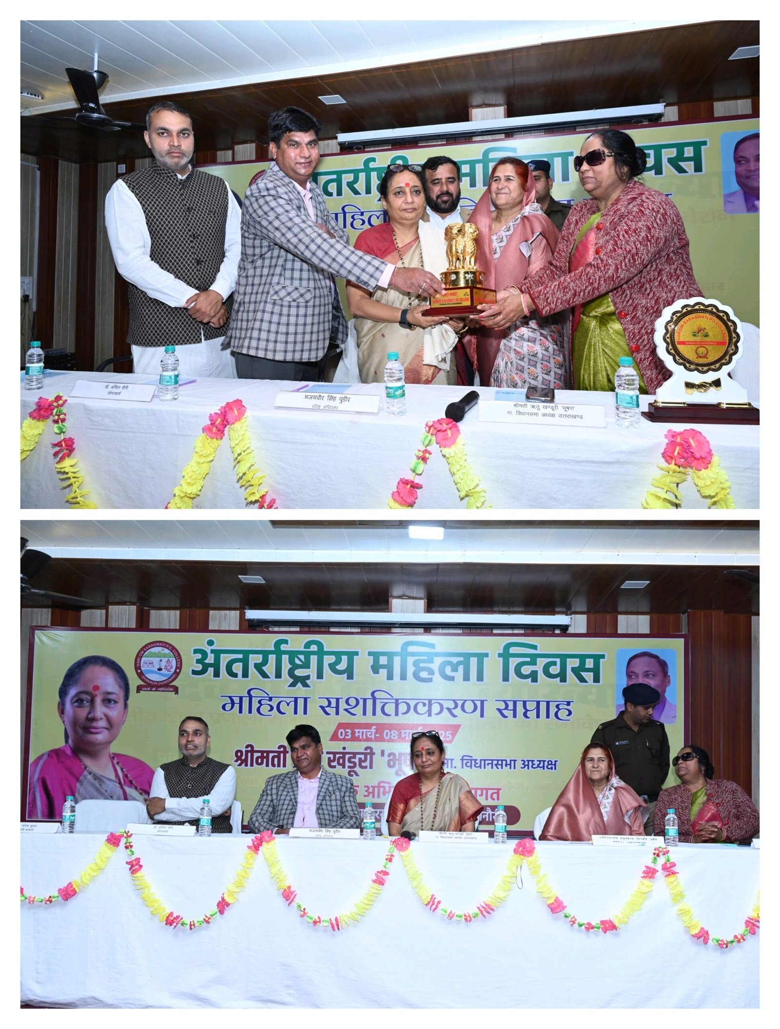 हरिओम सरस्वती पी.जी. कॉलेज, धनौरी, हरिद्वार में अंतरराष्ट्रीय महिला दिवस के उपलक्ष्य में महिला सशक्तिकरण सप्ताह (03 मार्च से 08 मार्च 2025 तक) का आयोजन किया गया। इस अवसर पर उत्तराखंड विधानसभा अध्यक्ष ऋतु खण्डूडी भूषण बतौर मुख्य अतिथि उपस्थित रहीं। उन्होंने छात्राओं को संबोधित कर उन्हें आत्मनिर्भर और सशक्त बनने के लिए प्रेरित किया।