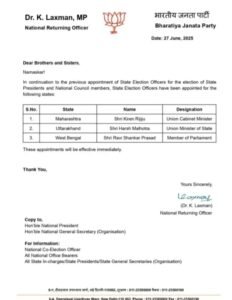 प्रदेश अध्यक्ष और संगठन चुनाव की करेंगे देखरेख,, आगे की चुनावी प्रक्रिया में निभाएंगे अहम भागीदारी